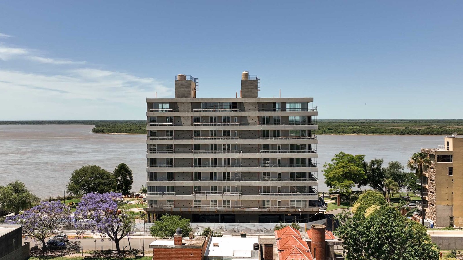 Ejecución de obra para complejo urbanístico de usos múltiples ubicado en la ciudad de San Lorenzo: Mirarío. El mismo contará con dos edificios residenciales, un paseo comercial, oficinas corporativas y un paseo peatonal público. El complejo posee una ubicación única con vistas exclusivas al río Paraná. Desde EDILIZIA estamos llevando adelante este proyecto junto a Grupo Noro y SV Arquitectura.